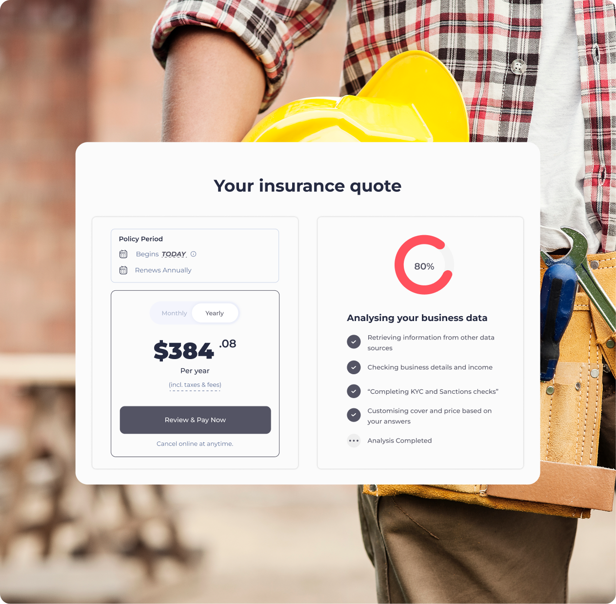 Instant Certificate of Currency – Get your certificate the moment cover is bound. Share with your builder, head contractor or client in one click.